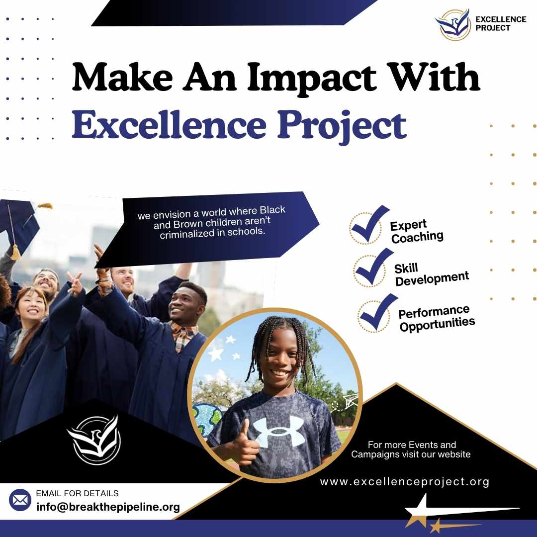 Support the Excellence Project to break the pipeline and transform youth outcomes through advocacy, programs, and community action. Join our mission to disrupt the school-to-prison pipeline by empowering children, advancing equity, and expanding opportunities for marginalized youth. Partner with us to make a measurable impact and drive meaningful change.